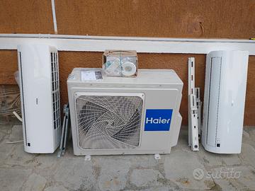 n.1 gruppo esterno HAIER Cod.2U18FS2ERA(S) scarico da caricare con il gas + n.2 unità interne 9.000 +9.000 BTU HAIER Cod. ASO9BS4HRA : il kit è stato smontato funzionante da un appartamento. ; schede tecniche e manuali di installazione scaricabili da Tavolla.com