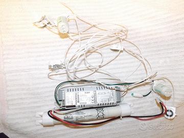 Vendo kit della DISANO completo di Batterie e tutto per la trasformazione di plafoniere al neon in lampade di emergenza funzionanti sia come solo emergenza che anche come luce normale (ed in contemporanea diventa di emergenza al mancare della tensione). Per tubi al neon da 18W. Anche 2 x 18W. Il kit è costituito da batterie, alimentatore, portalampade e tutto quanto visibile in foto. Se volete lascio tutti i fili come sono, alternativa lo fornisco con i cablaggi da fare. Vendo a 20 euro. Di facile installazione.