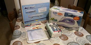 Vendo il kit ferro da stiro nuovo mai usato. Kit contiene Ferro da stiro a vapore, asse da stiro pieghevole da tavolo, panno da stiro speciale, leva pelucchi. Tutto a 40 euro