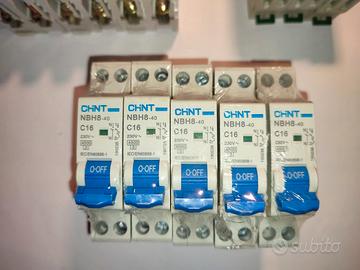 - 5 interruttori magnetotermici a 1 modulo din NUOVI SIGILLATI tutti da 16a con potere di interruzione da 4500A.