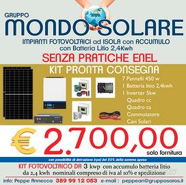 kit isola 3 kw batteria 2,4 kw senza allaccio enel