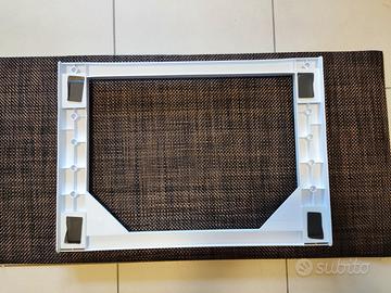 Kit Meliconi per sovrapporre lavatrice slim e asciugatrice slim. Le dimensioni sono larghezza 60 cm e profondità 43,5 cm. Il kit è completo di cinghia di sicurezza per assicurare insieme i due elettrodomestici una volta sovrapposti.