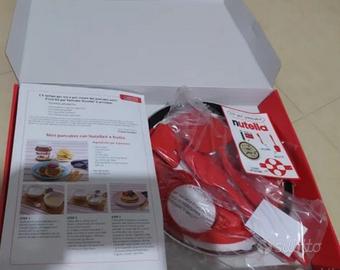 Vendo kit per pancake originale "NUTELLA", mai utilizzato ed ancora nella sua confezione originale. Il kit comprende: - padella crepiera con diametro 28 cm marca "Lagostina"; - stampo in silicone per pancake a forma di "barattolo di Nutella"; - spalmino e paletta. SPEDIZIONE INCLUSA NEL PREZZO! NO SCAMBI. OTTIMO COME IDEA REGALO!!