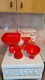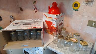 vendo kit per salsa di pomodoro formato da 40 vasetti medi, macinapomodoro manuale e imbuto per vasetti tutto in ottime condizioni. Non spedisco.