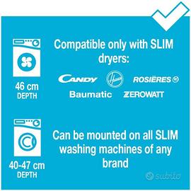 Kit sovrapponibile per lavatrici e asciugatrici, adatto per lavatrici con profondità 40-47 cm, compatibile con asciugatrici Candy, Hoover Baumatic e Zerowatt con profondità 46 cm.