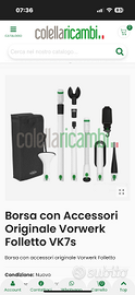 Vendo per inutilizzo kit pulizia aeree per folletto vk7s, tutto nuovo sigillato. Comprende tubi, prolunga, girasole e sacca. Euro 85 . Non faccio spedizioni