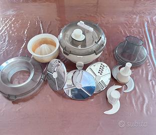 Il kit comprende: - LAMA PLASTICA PER IMPASTARE | ROBOT CUISILUX - DISCO LAMA PATATE | ROBOT CUISILUX - DISCO LAMA AFFETTA VERDURE | ROBOT CUISILUX - Disco Lama Julienne F-Grattugia | ROBOT CUISILUX - LAMA COLTELLO AFFETTA SMINUZZA MIXER | ROBOT CUISILUX - Centrifuga |ROBOT CUISILUX - Spremiagrumi |ROBOT CUISILUX (IN OMAGGIO) - coperchio bicchiere food-processor| ROBOT CUISILUX