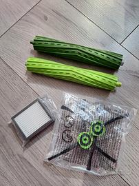 Vendo kit di manutenzione originale iRobot (no compatibili economici) ancora sigillati. Include coppia di rulli in gomma verdi, 2 spazzole laterali e 1 filtro HEPA. Compatibile con Roomba e5, e6, i1, i3, i7, j7.