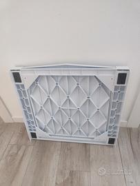 Consente di ordinare l’ambiente lavanderia sovrapponendo l’asciugatrice alla lavatrice, salvando spazio utile. È compatibile con tutte le lavatrici e asciugatrici con carica frontale larghe 60 cm e profonde anche oltre 60 cm. Supporta un peso fino a 250kg.