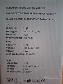 Vendo set professionale per il controllo del microclima, ideale per Grow Box, serre o ambienti domestici che necessitano di un'umidità costante e controllata. Materiale nuovo (fondo di magazzino) perfettamente funzionante. Il kit "Microclima" include: • UMIDIFICATORE SPECTRUM GROW LINE:Modello ad ultrasuoni da 2,3 Litri con produzione di nebbia fredda (250 ml/h). Molto silenzioso, dotato di luce notturna e diffusore di fragranze. Include scatola originale e manuale tecnico. • TIMER ANALOGICO AIRANTEK:Temporizzatore 24h a intervalli di 15 minuti, essenziale per programmare l'umidificazione in base ai cicli di luce/buio. • NEBULIZZATORE A PRESSIONE (2L):Pompa manuale con ugello in ottone regolabile, ideale per trattamenti fogliari o per aumentare l'umidità localizzata. • OMAGGIO:2 Pipette Pasteur graduate per il dosaggio preciso di nutrienti o essenze. STATO E SPEDIZIONE: Oggetto testato e pronto all'uso. Il kit è giàIMBALLATO E SIGILLATOin scatola sicura con protezione in pluriball per l'umidificatore. PREZZO PER TUTTO IL SET: € 45,00 Disponibile per consegna a mano o spedizione rapida tramite TuttoSubito (fascia di peso Media 2-5kg).