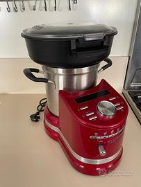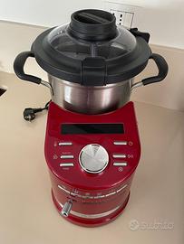 KitchenAid Cook Processor, in ottime condizioni. Con pentola extra, oltre a quella che si vede in foto, per cucinare, frullare, impastare, cucinare al vapore, tritare finemente. 10 velocità, 4 tipi di lame/accessori per montare, mescolare, cestello scolapasta, modulo per cucinare a vapore a due piani con coperchio, ciotola trasparente per tritare piccole quantità. Usato una decina di volte, sempre con ottimi risultati. Colore rosso smaltato lucido, senza graffi e difetti. Vendo a malincuore per inutilizzo.