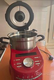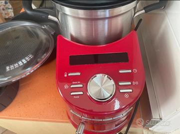 Vendo il "super" food processor per mancanza di spazio nella mia mini cucina e di tempo da dedicare alla preparazione di pietanze. Usato appena due volte e soltanto nella funzione di cottura. La stragrande maggioranza degli accessori è quindi ancora inutilizzata. Il food processor ha la cottura assistita e una capacità di 4,5 litri. C'è possibilità di cuocere al vapore nel vassoio grande e piccolo esterni e nel cestello interno. Ha diversi accessori e lame per frullare, tritare, impastare, emulsionare, montare, stufare e di una ciotola per riporle dopo l'utilizzo, 10 velocità, relative spie di indicazione e varie funzioni di cottura automatica.
