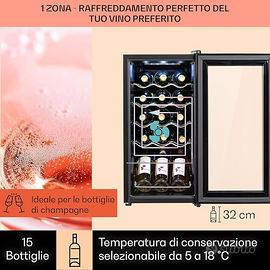 KLARSTEIN Cantinetta Vino Refrigerata a Zona Singola per Vino Rosso, Bianco e Birra, Controlli Touch, Frigo Vino Cantinetta per Esterno/Interno, 5-18°C, 53L, 15 Bottiglie.