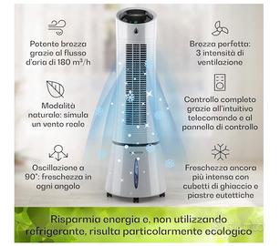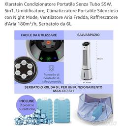 Klarstein Condizionatore Portatile Senza Tubo 55W, 5in1, Umidificatore, Climatizzatore Portatile Silenzioso con Night Mode, Ventilatore Aria Fredda, Raffrescatore d'Aria 180m%/h, Serbatoio da 6L