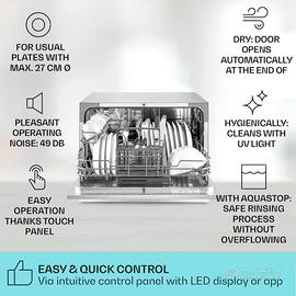 6 coperti , libera installazione silenziosa con 6 programmi di lavaggio, da tavolo compatta e facile da installare