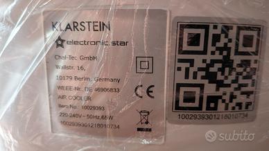 Maxfresh 6 L 444 m3/h Raffrescatore Bianco Perfettamente funzionante, utilizzato una stagione NON HO PIU' LA SCATOLA QUINDI SOLO RITIRO MANUALE IN VALDARNO (AR) Caratteristiche Flusso d'aria: 444 m³/h Potenza: 65 Watt Emissione di rumore: 51 Decibel Impostazioni timer: 15 Ore Precisione del timer: 1 Ora Capacità del serbatoio dell'acqua: 6 Litri Numero di livelli di raffreddamento: 3 Serbatoio: Rimovibile Modalità operative: Naturale, Notte, Normal Oscillazione orizzontale: Automatica Oscillazione verticale: Manuale Telecomando incluso Indicazione del livello dell'acqua Modalità notturna disponibile Rotelle per facile spostamento Tipo di connettore: Tipo C (CEE 7/16) Spina Euro