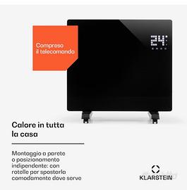Klarstein Stufa Elettrica Basso Consumo. Termoconvettore con Rotelle Usata pochissimo, alcune volte d’inverno nella casa secondaria. Si può appendere al muro altrimenti usare le rotelle per spostarla per tutta la casa. Compresa dí telecomando. Timer, regolamento della temperatura. Un oggetto d’arredo per il fatto dello schermo in vetro nero. Prezzo trattabile