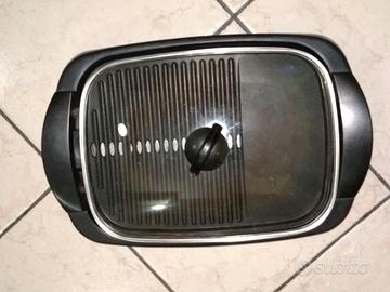 LA GRIGLIATA ARIETE Usata pochissime volte in ottimo stato Griglia barbecue professionale con coperchio removibile in vetro. Unica piastra con doppia modalità di cottura: rigata e forata per funzione barbecue, liscia e antiaderente per funzione grill Specifiche prodotto : Potenza 2000w - Dimensione griglia 33x24 - Coperchio removibile in vetro temperato trasparente - Vassoio raccogli grassi facilmente removibile - Piastra doppia cottura metà rigata con fori per drenaggio e metà liscia - Termostato per regolazione temperatura - Led indicazione stato on – •Cottura ottima: prepara gustose grigliate di carne, pesce e verdure dai sapori e profumi irresistibili •Modalità forno: il coperchio removibile in vetro temperato trasparente permette di arrostire alla perfezione tutti gli alimenti •Doppia piastra: piastra a due zone, rigata con fori per il drenaggio dei liquidi e liscia per le cotture uniformi •Doppia piastra: piastra a due zone, rigata con fori per il drenaggio dei liquidi e liscia per le cotture uniformi •Pratica e funzionale: il vassoio raccogligrasso inferiore permette il drenaggio dei grassi per una cottura sana e una facile pulizia