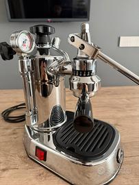 La pavoni professional anno 1988.funzionate con guarnizioni cambiate.termostato e pressostato nuovi.super accessoriata.termometro adesivo,portafiltro bottomless,portafiltro doppio originale e doppio nuovo,doccia schermo ims già installata e originale,filtri singolo e doppio originale,doppio compatibile e doppio ims(b582th29e).unici piccoli difetti:manometro (originale)crepato ma funzionante,piccolissima ammaccatura base vicino attacco filo e su caldaia(vedi foto o chiedi info)