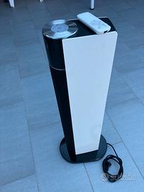 La stufa ha una struttura a torre che con il suo piede d'appoggio da 22 cm di diametro, è estremamente stabile e necessita di pochissimo spazio. Una funzione di oscillazione attivabile permette di distribuire il calore in tutta la stanza, velocizzando il riscaldamento. La temperatura può essere regolata per gradi tra 5 e 35 °C. Una volta raggiunta la temperatura impostata, la stufa si spegne automaticamente e riprende il funzionamento quando la temperatura scende sotto al livello desiderato. In questo modo si risparmia corrente, senza rinunciare al calduccio. Può essere impostato un timer di 24 ore. Dotata di telecomando