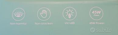 22 Leds/UV 45W. Timer 30-60-99 secondi (ripetibili).