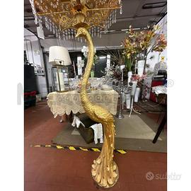 LAMPADA A PAVONE DORATO 160 DI ALTEZZA LAMPADA PAVONE DA TERRA CON PARALUME A OMBRELO IN OTTONE