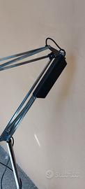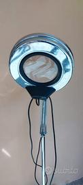 Lampada snodale con lente ingrata, illuminata luce neon color bianco, con base stativo a 5 raggi su ruote. Ritiro a mano