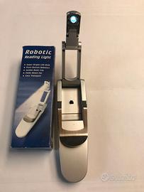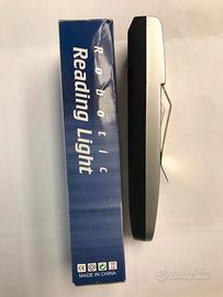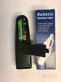 Lampada da Lettura Robotizzata con LED luminoso che fornisce luce per la lettura. Il braccio robotico di luce si attiva con la semplice pressione di un pulsante. La clip assicura l'aggancio a riviste, libri, giacca ecc. 2 batterie AAA comprese. Confezione originale compresa. Condizioni perfette. Può essere utilizzata anche in caso di emergenze domestiche.