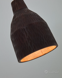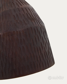 Scopri il fascino autentico della lampada Amire, un oggetto di design che unisce artigianalità, materia naturale e atmosfera. Ogni pezzo nasce da un’attenta lavorazione del legno, dove la texture viene scolpita e valorizzata attraverso una speciale tecnica di combustione che crea una finitura scura, intensa e ricca di sfumature. Le superfici incise rivelano rilievi unici e irripetibili, capaci di dare profondità e carattere alla lampada. Quando si accende, Amire diffonde una luce calda e avvolgente che trasforma l’ambiente in uno spazio intimo e accogliente. Perfetta per il soggiorno, la camera da letto o uno studio, Amire non è solo una lampada: è un elemento d’arredo che racconta una storia di materia, fuoco e artigianato. Perché scegliere Amire Realizzata in legno lavorato artigianalmente Finitura ottenuta con tecnica di combustione per tonalità profonde e naturali Texture incisa unica che rende ogni pezzo diverso dall’altro Luce calda e rilassante che valorizza ogni ambiente (lampada non inclusa) Specifiche Tecniche: Lampada da soffitto allungata Amire in legno con finitura marrone Ø 21 cm Lunghezza del cavo 40 cm Larghezza del paralume (cm) 21 cm Altezza del paralume (cm) 26 cm Profondità del paralume 17 cm Altezza della base della lampada 2,5 cm Larghezza della base della lampada Ø 12 cm Attacco per lampada (non inclusa) E27