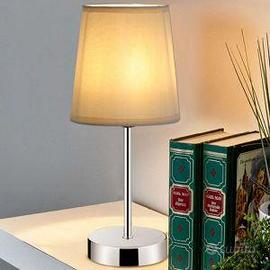Lampada da Tavolo/Comodino - Acciaio Cromato e Tessuto Beige Marca: Bakaji Condizione: Nuova