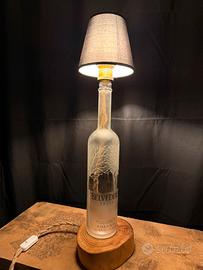 Bottiglia belvedere da 1,5 l recuperata per abat-jour con legno di nespolo trattato con oli naturali