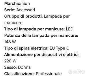 Vendo quasi nuovo e per inutilizzo la.pada LED asciuga unghie, marca "SUN X5 MAX", con 3 livelli di asciugatura segnalato nel display