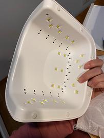 Lampada LED per smalto semipermanente. Assieme anche alcuni accessori per manicure (smalto, solvente ecc.)