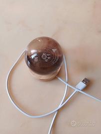Piccola lampada decorativa con cavo USB e luce a led che cambia colore. Base in legno che fa da sostegno a una sfera in vetro con all'interno il sistema solare effetto 3D.