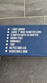 Lampada a Led con lente di ingrandimento, supporto e morsetto. Dimensione della lente 7". 5 diottrie. Potenza della lampada 16 watt ( 84 smd led). Dimmerabile. Voltaggio 240 V/50-60Hz.