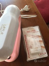 Lampada per Unghie LAYLA usata pochissimo, come nuova. REGALO formine per unghie e beauty contenitore originale con scomparti per accessori manicure