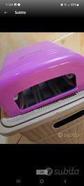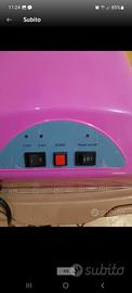 Vendo una lampada UV per unghie del marchio CosmoNails, l'accessorio perfetto per una manicure professionale a casa. Con una potenza di 36 Watt e 4 lampadine, garantisce un'asciugatura rapida e uniforme di gel e smalti semipermanenti. È facilissima da usare grazie ai timer preimpostati da 2 e 3 minuti e all'interruttore Power on/off. Il design è compatto, di un vivace colore rosa. La lampada è in ottime condizioni e perfettamente funzionante, pronta per darti unghie impeccabili e durature in pochi minuti. La scatola originale è leggermente rovinata, ma il prodotto è integro. Un vero affare per chi cerca risultati da salone comodamente a casa.