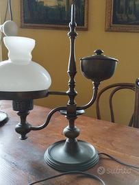 lampada quinquet con paralume opalina: perfetta co impianto elettrico nuovo