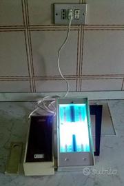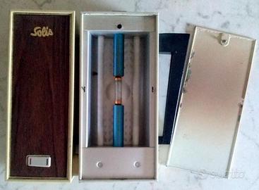 Vendo una stupenda lampada solare vintage abbronzante anni '60 del secolo scorso ancora perfettamente funzionante! Apparecchio "elettromedicale" d'epoca, è stato usato pochissimo da mia madre ed è ancora in apparenti perfette condizioni (vedere le foto con le lampade accese). E' munito di foglietto manuale originale (in francese).