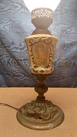 Lampada Stile Capodimonte Putti Amorini Antico Lume A Olio Da Tavolo Anni 60 altezza 42 cm