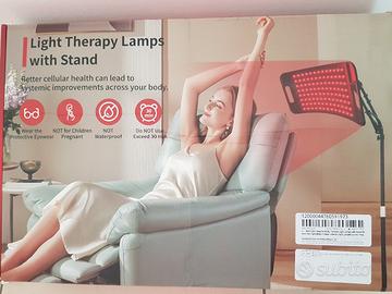 Lampada da 24W con 104 led, con piedistallo, per terapia con luce rossa a 660nm e infrarossa a 850nm. Gli studi esistenti riguardano la riduzione dell'infiammazione muscolare e la stimolazione del collagene.