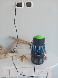 lampada uccidi zanzare in ottime condizioni e per accenderla basta attaccare la spina alla corrente e sopra alla lampada c e un sensore nel quale basta metterci sopra il tappetto per accenderla
