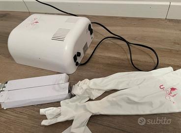 Vendo lampada come nuova Con guanti senza punta per proteggere le mani durante I esposizione ai raggi UV della lampada 2 lampade di scorta Manuale