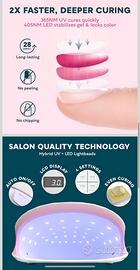 36 perle LED sono distribuite uniformemente all'interno della lampada per unghie per aiutare a curare in modo uniforme lo smalto gel. Non c'è bisogno di preoccuparsi di sostituire le perle della lampada.