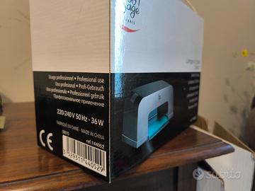 Caratteristiche Tecniche Potenza: 36 W, alimentata da 4 bulbi neon da 9 W ciascuno (codice ricambio: 144037). Timer: Doppia modalità di funzionamento, con timer preimpostato a 120 secondi o modalità continua. Design: Interno riflettente per ottimizzare la catalizzazione e vassoio estraibile per facilitare la pulizia o l'utilizzo per la pedicure. Dimensioni: Circa 25 x 17 x 12 cm.
