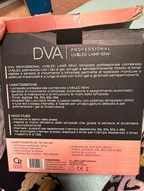 Lampada UV LED professionale da 65W per unghie, marca DVA. Perfettamente funzionante, usata ma in ottime condizioni. Ideale per semipermanente, gel e ricostruzione unghie. Timer integrato e asciugatura veloce. Vendo per inutilizzo. Possibilità di prova.