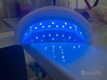 Lampada UV per unghie. Usata poche volte. In aggiunta una serie di smalti usabili per fare il semipermanente.