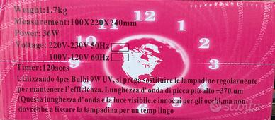 Lampada da 36 Watt con interno totalmente riflettente che moltiplica la quantità di raggi UV emessa, assicurando una ripartizione uniforme degli stessi rinforzando l'efficacia dell'asciugatura.