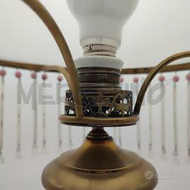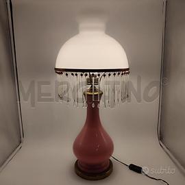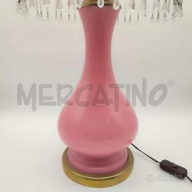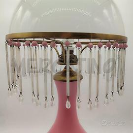 LAMPADA VETRO ROSA CON PENDENTI BORDO DORATO CONDIZIONI COME DA FOTO 3 GOCCE MANCANTI ALTEZZA 67 CM