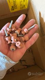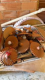 Vendo come da titolo 8 splendidi lampadari marchiati “aldo bernardi”, nello specifico linea “piega”; i lampadari si presentano in ottimo stato, tenuti egregiamente, solmante impolverati dal tempo. Sono 7 lampadari completi e 1 con la parte in ceramica che va al soffitto rotta, tanti metri di trecciola e i puntini che servono per la tendere la trecciola sempre in ceramica. Vendo in blocco a 400€ o separati a 50 €cad’uno, chi compra in blocco regalo anche trecciola e punte. NON SPEDISCO PERCHE POTREBBERO ROMPERSI E NON VOGLIO RESPONSABILITA ALCUNA.
